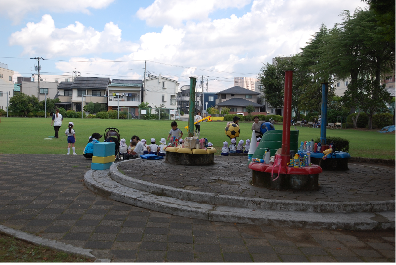 運動会の練習を西公園で行っています。跳び箱や大きなボールが見えます。詳しいことは当日のお楽しみということで、お伝え出来ませんが、日陰でお茶タイムを設けながら、楽しんで取り組んでいます。