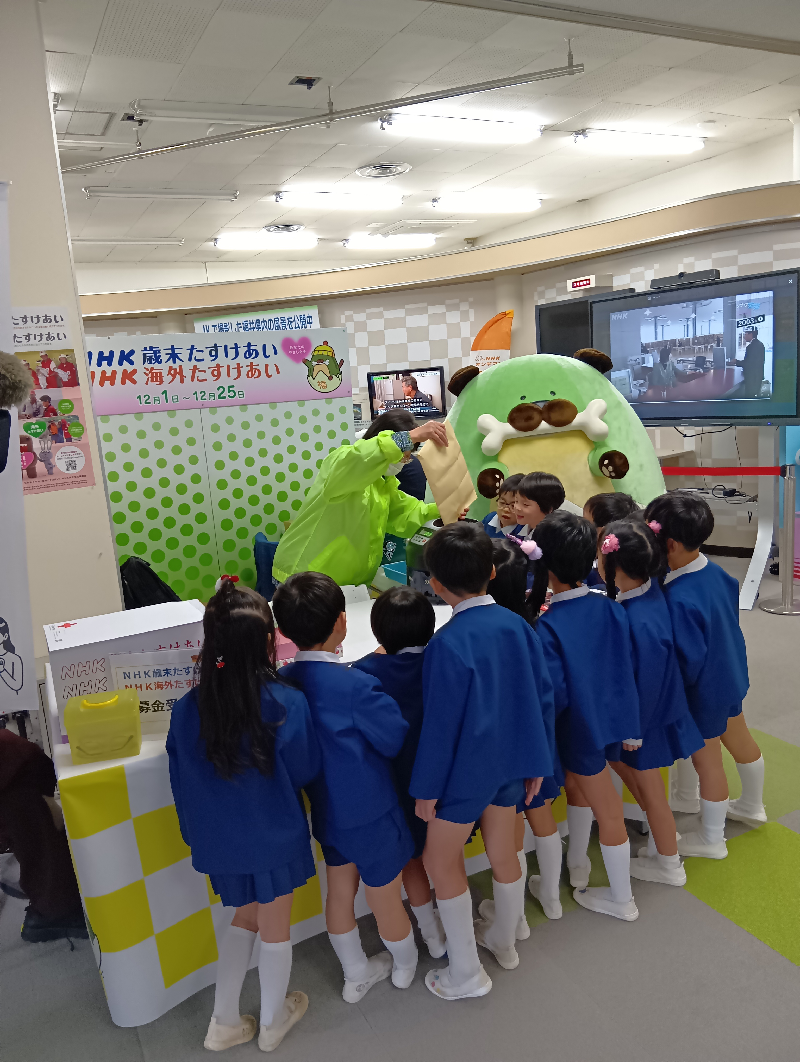 きく組が、園を代表して歳末助け合いの募金をNHKに届けてきました。その様子は、12時15分からのニュースと夕方のニュースザウルス福井で取り上げていただけることになりました。お見逃しなく。なお、募金額は、本日配付の別紙でお伝えします。