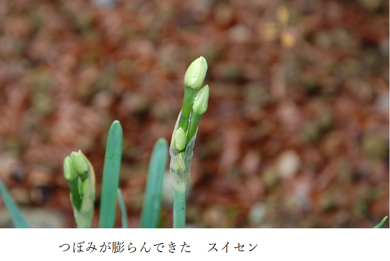 年中・年長の子どもたちは、スポーツランドの後、いす取りゲームなどをして、元気いっぱい過ごしています。園庭では、スイセンが花のつぼみを膨らませ、びわはこの寒い時期に花を咲かせています。