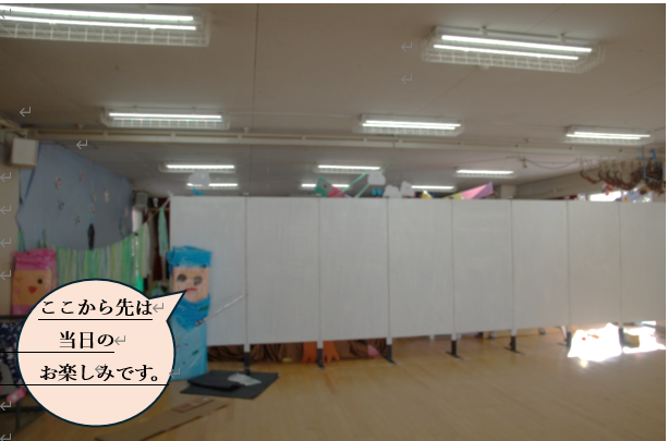 今週土曜日の作品展に向けて、準備を進めています。玄関の看板、案内ポスターの設置。会場内にはパネルが搬入され、絵を掲示する予定です。パネルの向こう側には、昨日HPの「最新保育風景はコチラ」で紹介した学級ごとの作品が展示してありますが、今はまだ秘密です。当日をお楽しみにしてください。