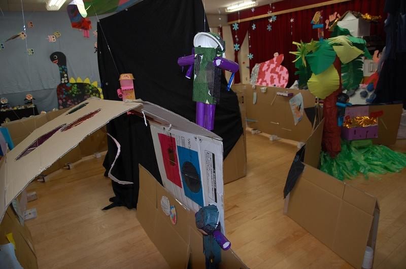 土曜日には作品展においでいただきありがとうございました。絵画、造形作品、そして子どもたちが創造した忍者の世界はいかがでしたか。ステージ上には、レーザービームに触れないように侵入する忍者の体験コーナーもあり、楽しんでいただけたのではないでしょうか。会場には、先日絵を寄贈していただいた朝井さんのご家族も来ていただき、「明るい色使いの絵が並んでいますね。」とほめていただきました。これからも園の教育活動にご理解ご協力の程、よろしくお願いいたします。