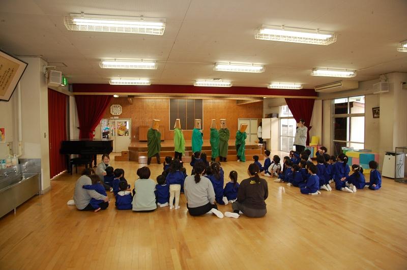 3学期の誕生会を行いました。1月~3月生まれの園児が、ステージに立ち、「好きな食べ物」などの発表をした後、プレゼントをもらいました。その後、先生当てクイズをしました。6人の先生がだれか、子どもさんと一緒に考えてください。答えは後日。お楽しみに。