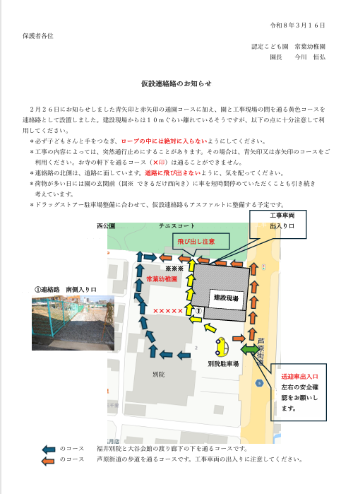 仮設通園路のお知らせ